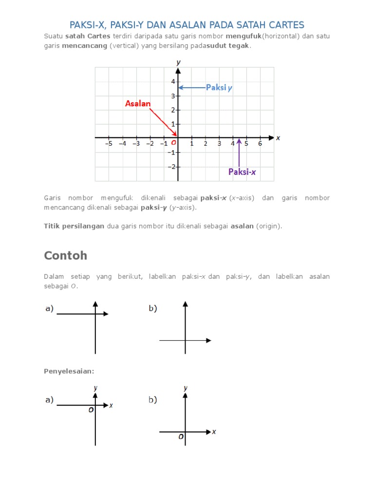 Matematik 1 2 3 Paksi X Paksi Y Dan Asalan Pada Satah Cartes